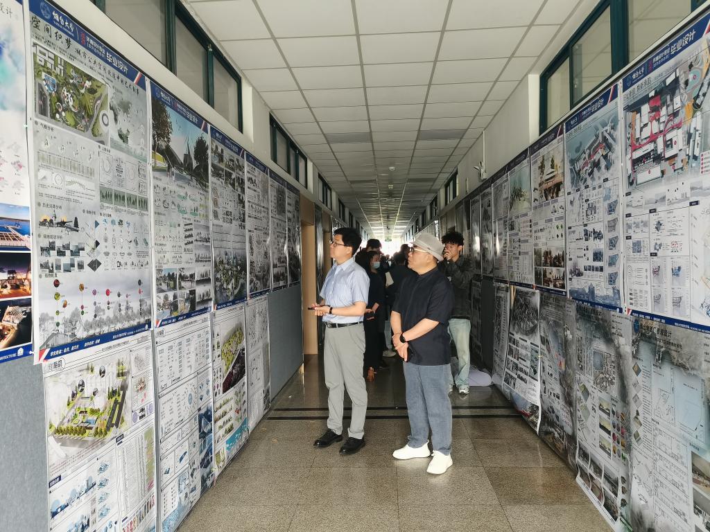 院长助理王磊主持,42组毕业设计作品按主题分为4个小组展示。答辩前,评审团队参观了以“生态齐鲁—山东城乡健康人居环境设计”为主题的毕业设计展览,对作品聚焦乡村聚落、城市街区、工业遗址等多元人居环境单元,深入剖析地域生态特征与发展需求,通过创新设计探索可持续发展路径的实践成果给予充分肯定。