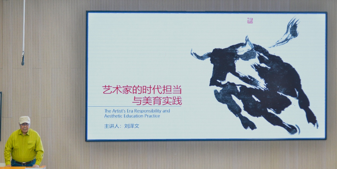 美育大讲堂迎来一位特殊的主讲人——82岁的艺术家刘泽文先生。作为从艺六十余载的“文艺战线的老兵”,他以“艺术家的时代担当与美育实践”为主题,结合个人成长经历与美育实践,为师生带来了一场充满家国情怀与艺术温度的分享。讲座由院长隋杰礼教授主持,全院师生共同参与。