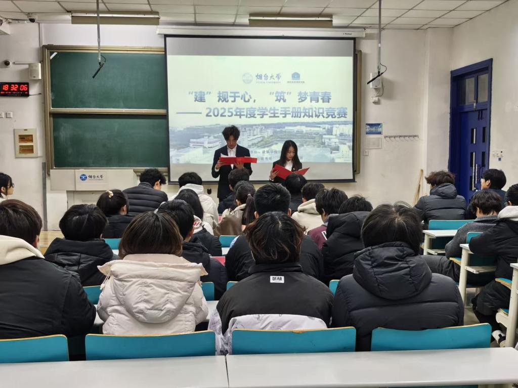 于12月24日在综合楼302教室顺利举办2025年度学生手册知识竞赛。9支参赛队伍同台竞技、各展风采,为现场师生呈现了一场集知识性、竞技性与教育性于一体的青春盛宴。